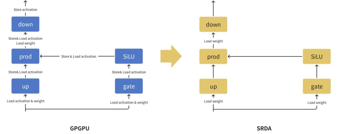 SRDA 架构则将“数据流”(Data-Flow)作为第一性原理,通过硬件设计直接映射 AI 计算图中的数据依赖关系。中间数据在经过优化的、可定制的计算路径上,于计算单元之间点到点直接传输,大幅减少了对内存的依赖和访问次数。这种设计理念从根本上减少了数据移动的距离和频率——当前计算系统中主要的性能和能耗瓶颈之一。