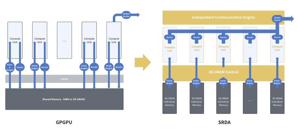 为彻底攻克内存瓶颈,SRDA 修改整个内存架构,在计算芯片上直接分布式地集成超高带宽、大容量 3D-DRAM 内存,实现内存带宽的极致提升。